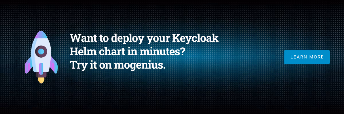 Make sure to evaluate which Helm chart best fits your use case. For the purpose of this tutorial, we’ll continue with the Keycloak chart from Bitnami, which uses free public images.